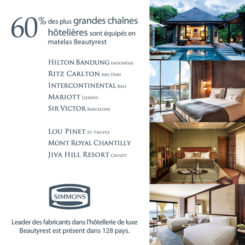 60% des plus grandes chaînes hôtelières sont équipés en matelas Beautyrest !